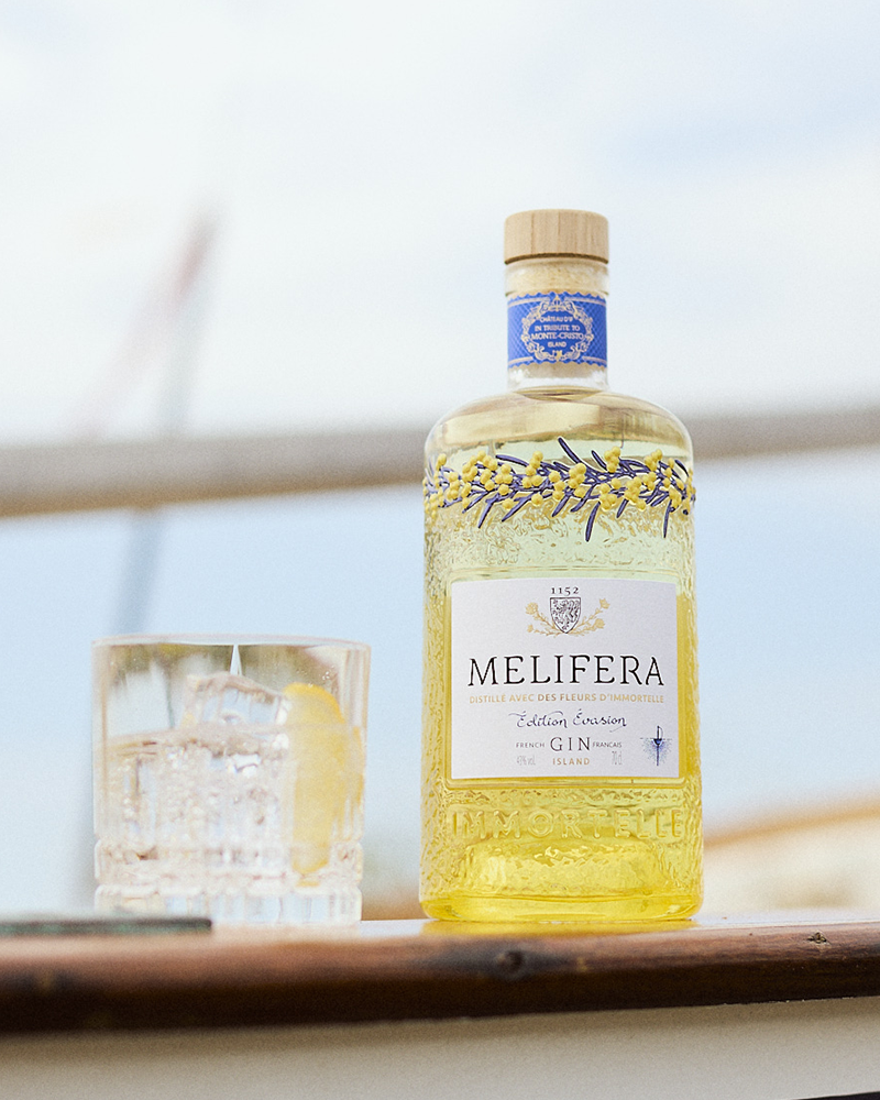 Les immortelles récoltées chaque année sur le Jardin Melifera et qui font la spécificité de la marque, sont toujours présentes. À ces immortelles se mêlent des notes de verveine citronnée, de fleur d’oranger, d’abricot et d’agrumes dans une recette d’une douzaine de botaniques aux parfums de méditerranée. Un gin plus fruité, une nouvelle édition complétant la gamme Melifera.